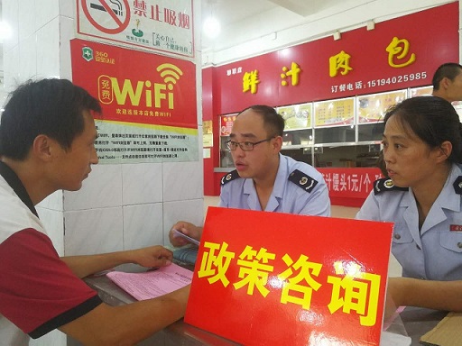图为:残疾人在向市地税局工作人员咨询政策