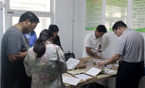 图为青海省残联考察团听取邻里互助护理照料工作汇报