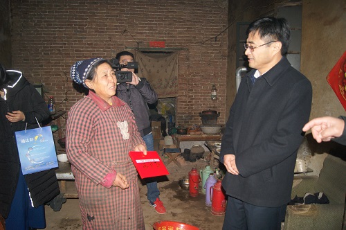 图为省残联副理事长张文涛同志为贫困残疾人送去了慰问金